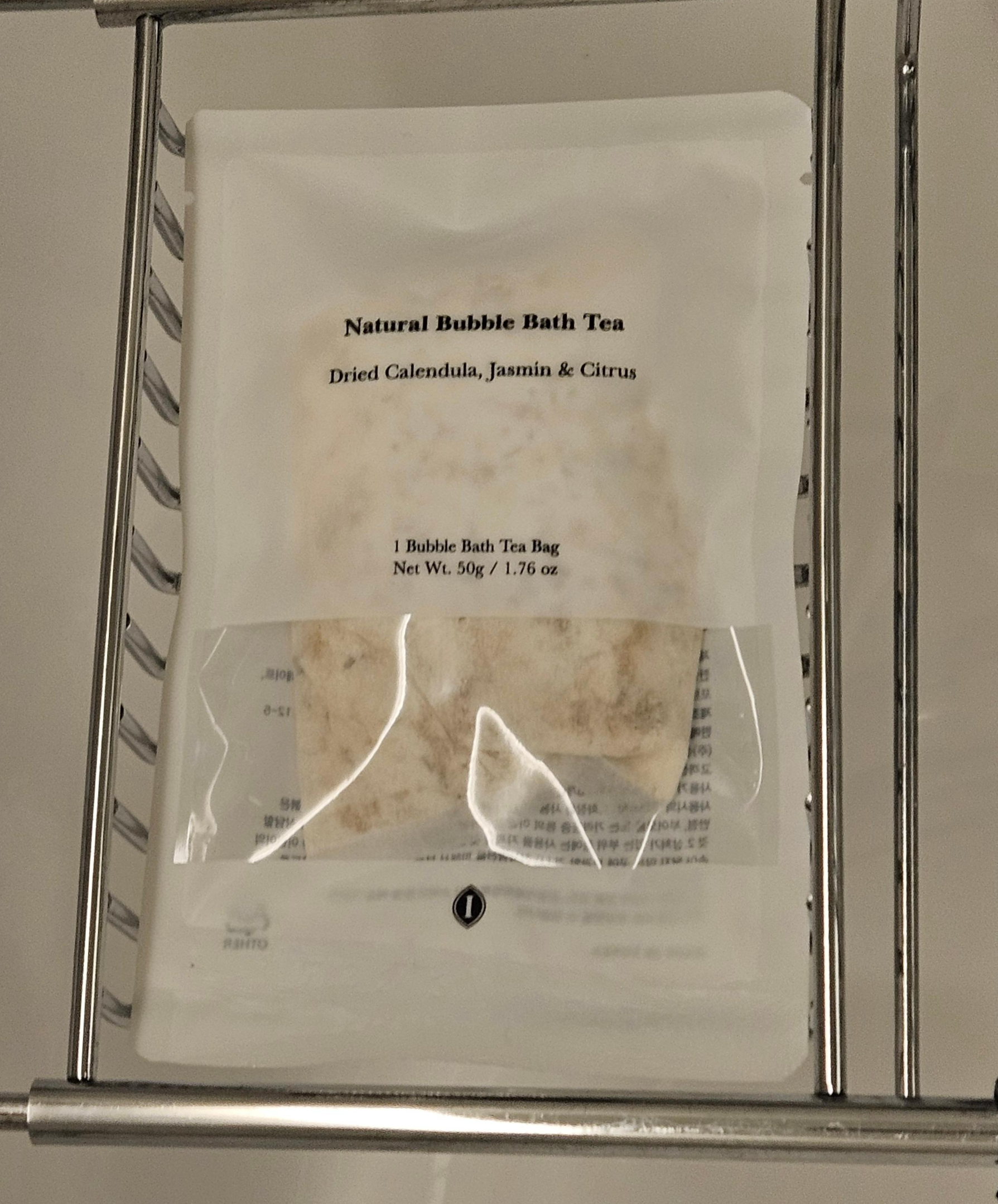 욕조 위에는 버블 bath 티가 준비되어 있었는데 저는 따로 러쉬 제품을 사 왔기 때문에