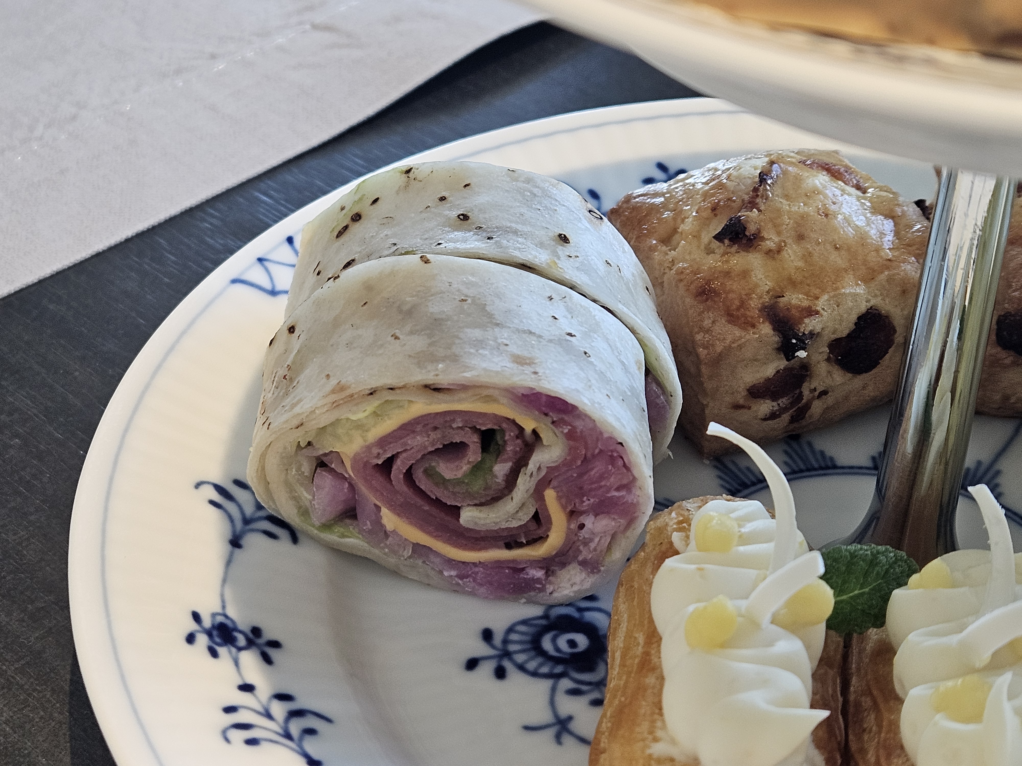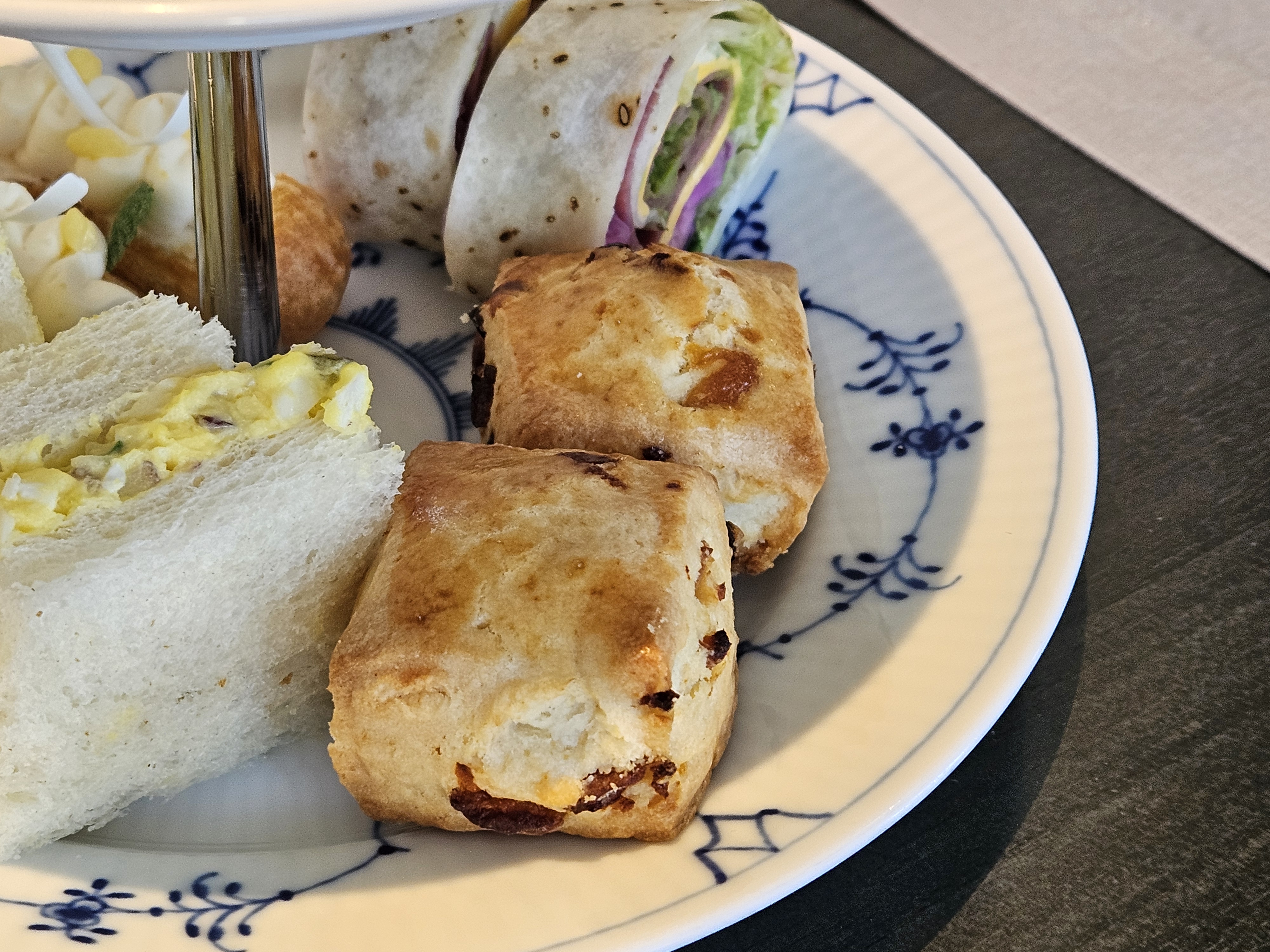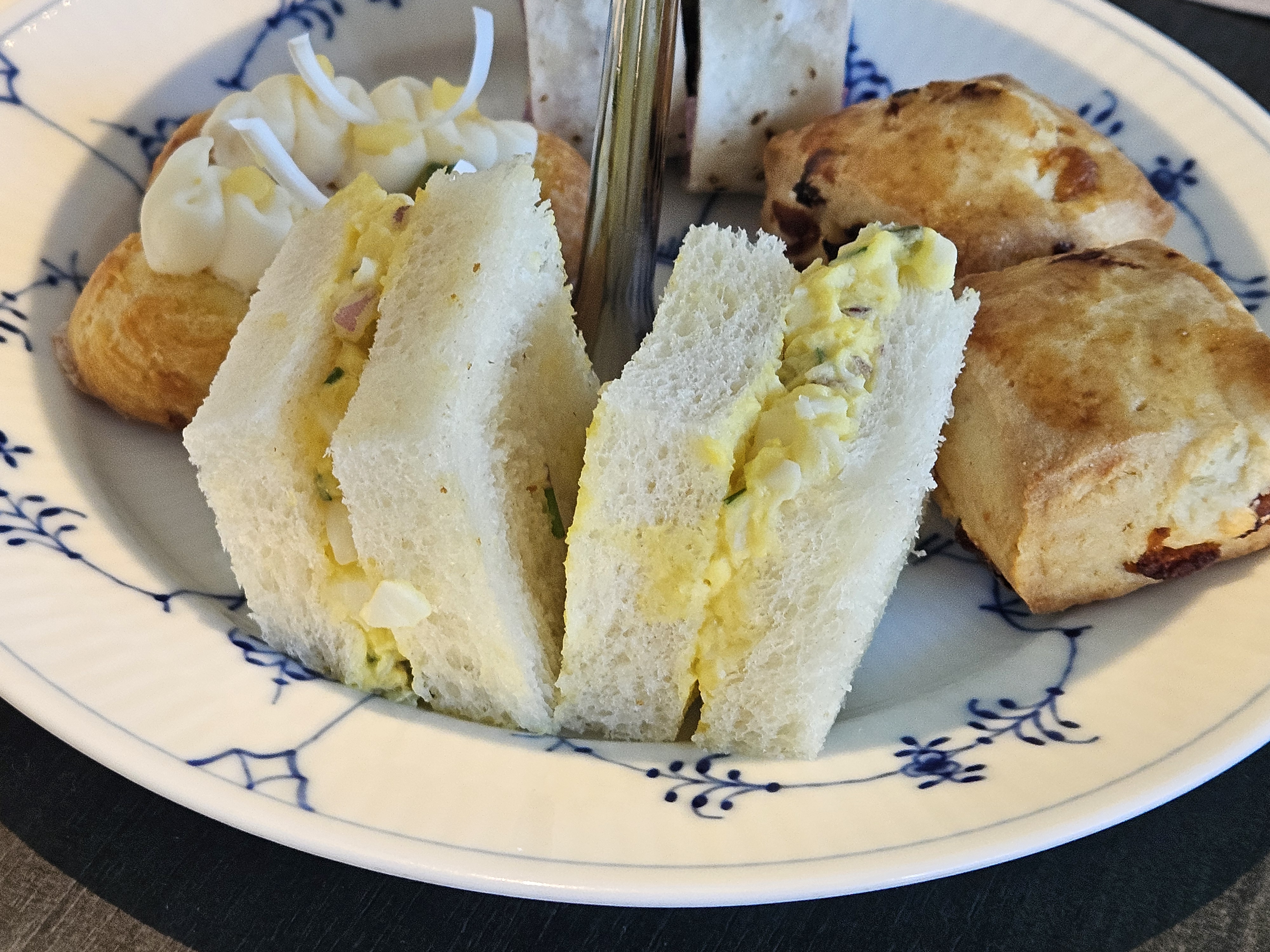 아래쪽은 계란 샌드위치나 스콘 등이 있었는데